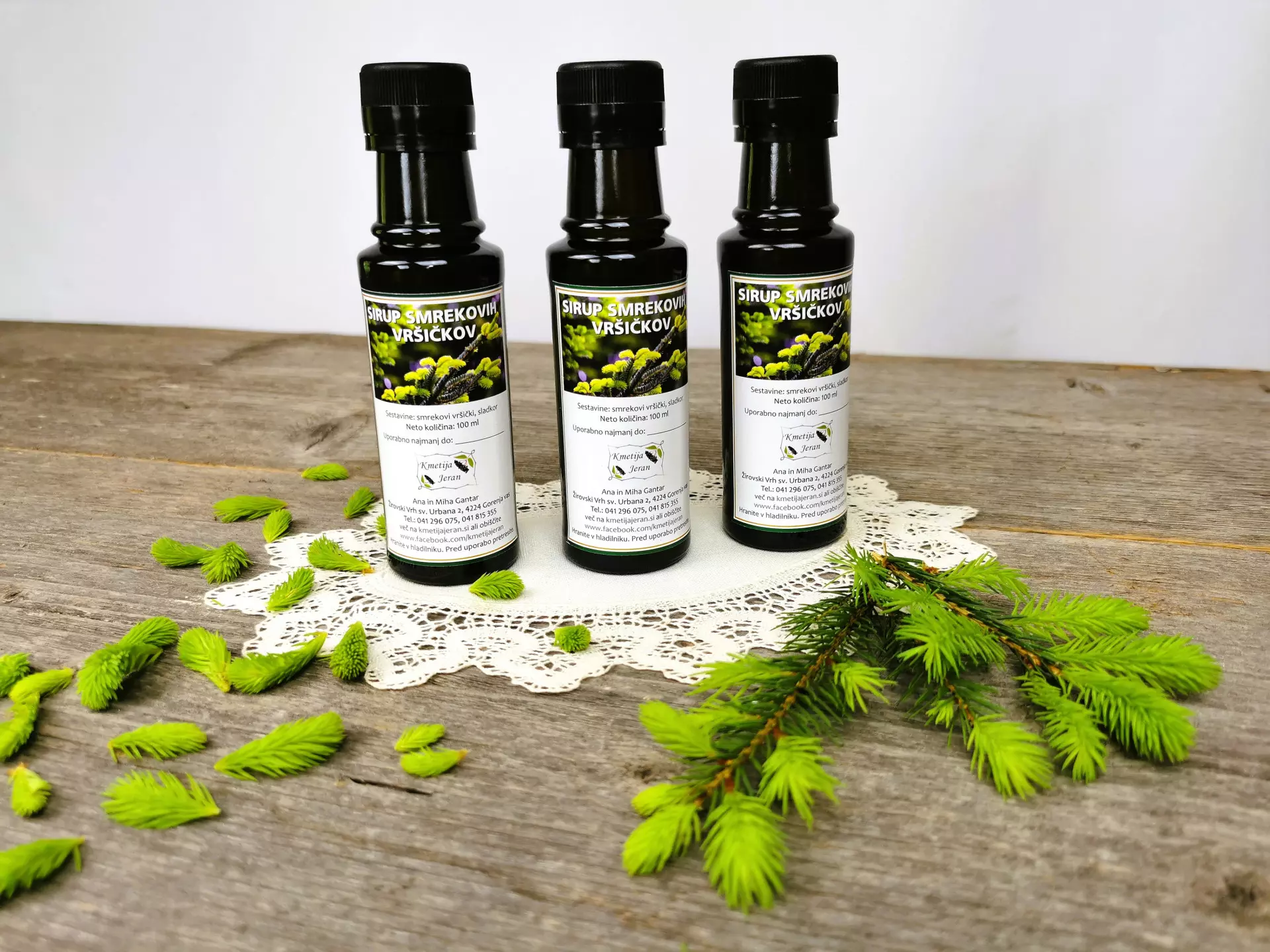Se spomnite kozarcev, napolnjenih z mladimi poganjki smrekovih vršičkov in potresenih s sladkorjem? Zlažimo plast za plastjo v glaže ter jih pustimo na soncu, da narava naredi svoje. Tako mi delamo sirup smrekovih vršičkov še danes. Na ta odličen tradicionalen način, pridobivamo te zdravilne kapljice. Zeliščni sirup iz smrekovih vršičkov vsebuje veliko vitamina C, zato krepi splošno odpornost, poživlja in preganja utrujenost. Velja tudi kod odlično ljudsko zdravilo pri prehladnih obolenjih.